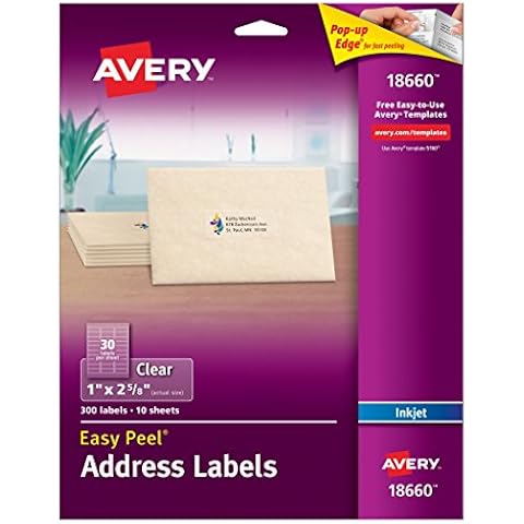 Avery 18160 Easy Peel Address Labels, 1 X 2-5/8, White, 300 Labels/Pack Avery Easy Peel Printable Address Labels with Sure Feed, 1" x 2-5/8", White, 750 Blank Mailing Labels (08160) 11,228 #1 Best Seller in Address Labels 15 offers from $9.24 Avery Address Labels with Sure Feed for Laser & Inkjet Printers, 1" x 2-5/8", 750 Labels - Great for FBA Labels (18260) 9,168 3 offers from $8.98
