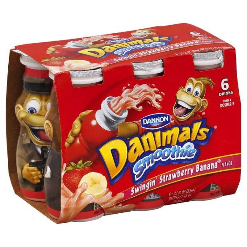 Strawberry Banana Nonfat Kids Yogurt - Danimals Nutrition Facts Ingredients Cultured Grade A Non Fat Milk, Cane Sugar, Water, Modified Corn Starch, Strawberries, Contains Less Than 1% Of Natural Flavors, Bananas, Fruit And Vegetable Juice (For Color), Agar Agar, Lemon Juice Concentrate, Vitamin D3. Contains Active Yogurt Cultures Pack sizes available: single serve Calories in Dannon Danimals, Yogurt Smoothie, average all ... Danimals, Yogurt Smoothie, average all flavors How many calories in Dannon Danimals, Yogurt Smoothie, average all flavors 60 Calories Quantity bottle (3.1 fl. oz) Serving Add To Compare 0/8 Nutrition Facts Calorie Burn Time How long would it take to burn off 60 Calories of Dannon Danimals, Yogurt Smoothie, average all flavors? Swimming 5 minutes Strawberry Banana Kids Smoothie - Danimals Calories : 50 : Calories from Fat : 0 % Daily Value* Total Fat : 0g : 0% : Saturated Fat : 0g : 0% : Trans Fat : 0g : Cholesterol <5mg : 1% : Sodium : ... Danimals Pouches bring the creamy goodness of Danimals lowfat yogurt in a convenient pouch. No spoon, no mess! Learn More . DANIMALS YOGURT CUPS. DANIMALS ...