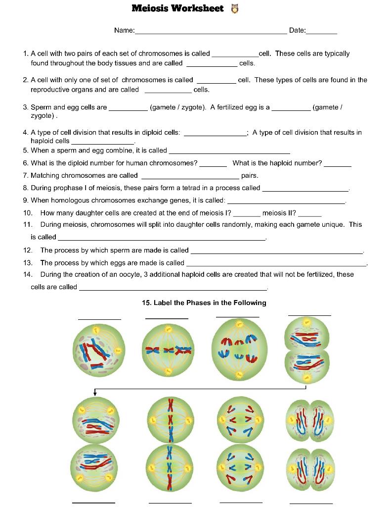 Label the phases of meiosis worksheet answers