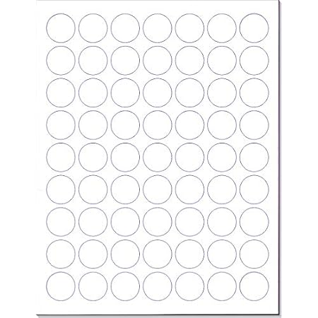 White 1" Round Circle Labels - 63 Labels Per Sheet - amazon.com Labels Measure 1" Round Each and come 63 on an 8 1/2" x 11" Sheet Permanent Adhesive Backing - Great for printing Product Tags, Stickers, and Seals 25 Sheets = 1575 Labels Please note: Due to the small size and high amount of stickers per sheet, printing accurately may be difficult. Full bleed printing is recommended to ensure full coverage. 1 inch round labels, clear color circular labels for laser and inkjet ... 1 inch round labels, clear color circular labels for laser and inkjet printing WL-1025 | Round Label Product Code: WL-1025WX-100 Item specifics: Size: 1" Labels per sheet: 63 Same size as**: Intended use: Margins: Top 0.5", Bottom 0.5", Left 0.38", Right 0.38" See more specs Select Your Material: Standard White Matte (Laser & Inkjet)