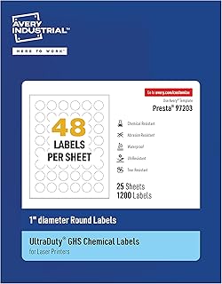 Avery Removable Laser/Inkjet Identification Labels, 1" Dia., White, 63 ... These identification labels make your most important messages stand out Round 1" diameter labels White color for an attractive look Removable adhesive for residue-free cleanup 63 labels per sheet, 15 sheets per pack; 945 total labels Compatible with laser and inkjet printers for maximum flexibility