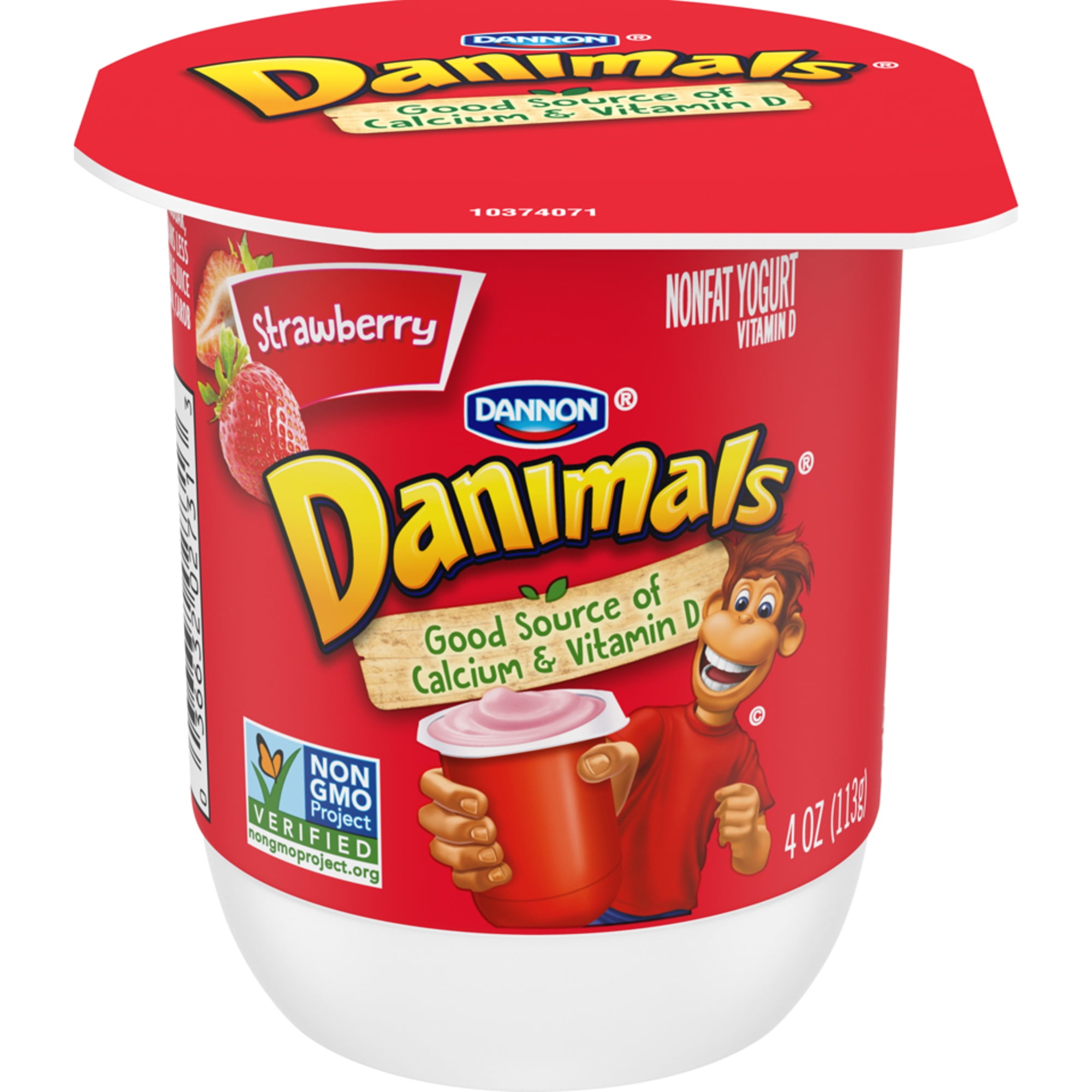 Danimals Yogurt, Nonfat, Strawberry Banana: Calories, Nutrition ... Potassium 188 mg 4% Total Carbohydrate 12 g 5% Dietary Fiber 0 g 0% Sugars 9 g 13% Added Sugars 5 g 21% Protein 4 g 8% Calcium 130 mg 13% Iron 0 mg 0% Vitamin D 2 mcg 10% Ingredients Cotton Candy Kids Smoothie - Danimals Where to Buy Ingredients Cultured Grade A Low Fat Milk, Water, Cane Sugar, Food Starch, Contains Less Than 1% Of Natural Flavors, Milk Minerals, Fruit And Vegetable Juice (For Color), Lemon Juice Concentrate, Vitamin D3 Contains Active Yogurt Cultures: S.Thermophilus & L.Bulgaricus. Pack sizes available 6-Pack 12-Pack nutritional Information