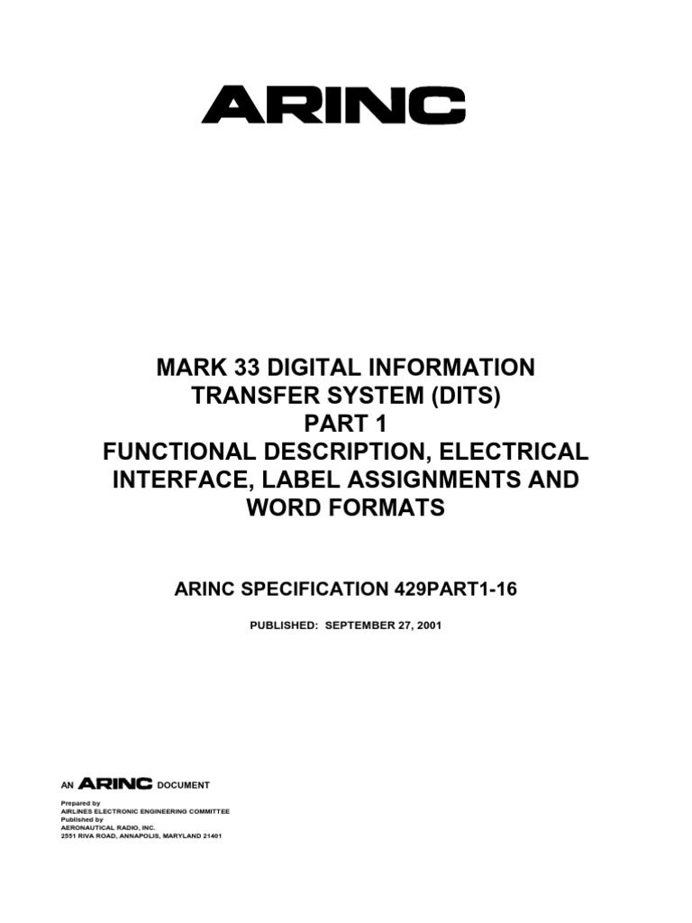 KNX (standard) - Wikipedia KNX standard. The KNX standard has been built on the OSI-based EIB communication stack extended with the physical layers, configuration modes and application experience of BatiBUS and EHS.. KNX installations can use several physical communication media: Twisted pair wiring (inherited from the EIB standard). (The previously inherited BatiBUS communication medium … PDF Data bus for Civil Aircraft - Madras Institute of Technology • This presentation is about ARINC 429 Data bus which is commonly used in all civil aircrafts. • ARINC- stands for "AeronauticalRadio INC" • ARINC is a private corporation organized in 1929 comprises of a airlines, aircraft manufacturers and avionics equipment manufacturers to produce specifications and standards for avionics equipment. Arinc 429 Label List Pdf - Arinc 429 Tutorial United Electronic ... The 5 parts of data words on the arinc 429 labels list · label a.k.a. And an 8 bit label describing the data itself. Arinc 429 typically uses odd parity. Sort data based on the arinc 429 label and sdi bits and stores it in fifo. Lrn and cni bit definitions list the label codes output primarily by long range. PDF ARINC 429 Decoder, Users Manual - LAHNISS ARINC 429 is usually transmitted over a twisted pair. While it is highly recommended to use a differential probe to measure ARINC 429 signals, it is possible to use a single ended probe on the Positive or Negative lines of the pair. In this case the signal appears either normal or inverted, without common mode rejection.