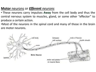Labeled Neuron Diagram | Science Trends Motor neurons are part of the central nervous system (CNS) and communicate signals from the spinal cord to the parts of the body to control their motion. For example, motor neurons send signals to the muscles in your arms causing them to contract. Motor neurons send electrical signals to your intestines so they move and churn food.