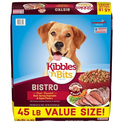 Bistro Oven Roasted Beef Flavor | Kibbles 'n Bits® It's a deliciously satisfying meal you can feel good about serving your dog every day! Thoughtfully Prepared with Crunchy Kibbles and Tender Meaty Bits Oven Roasted Beef Flavor + Spring Vegetable & Apple Flavors 100% Complete Balanced Nutrition for Adult Dogs For Dogs of All Sizes 23 Essential Vitamins & Minerals Antioxidant Rich Made in the USA