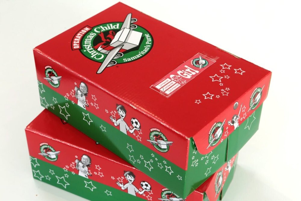 Samaritan's Purse - Preprinted Shoeboxes—Plastic (Pack of 12) National Collection Week is Nov. 14-21, 2022. These sturdy, decorative Operation Christmas Child plastic shoeboxes are ready to be filled with gifts for children around the world and serve as a useful and valuable part of their gift—a treasured keepsake for years to come. Order in packs of 12. Specifically designed to fit well in our shipping ... Samaritan's Purse - Preprinted Shoeboxes—Cardboard (Pack of 50) While labels will no longer be included along with these cardboard boxes, free labels are available. When you make your $10 donation per shoebox online using Follow Your Box, you can discover the country destinations of your shoebox gifts. Just activate one or more labels, or entire sets of 50 with a single scan from your smartphone camera.