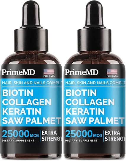 (2 pack) Liquid Biotin Collagen Keratin Saw Palmetto 25000mcg Drops 4-in-1 Hair Skin and Nails Vitamins with Biotin and Collagen Supplement 120ml ...