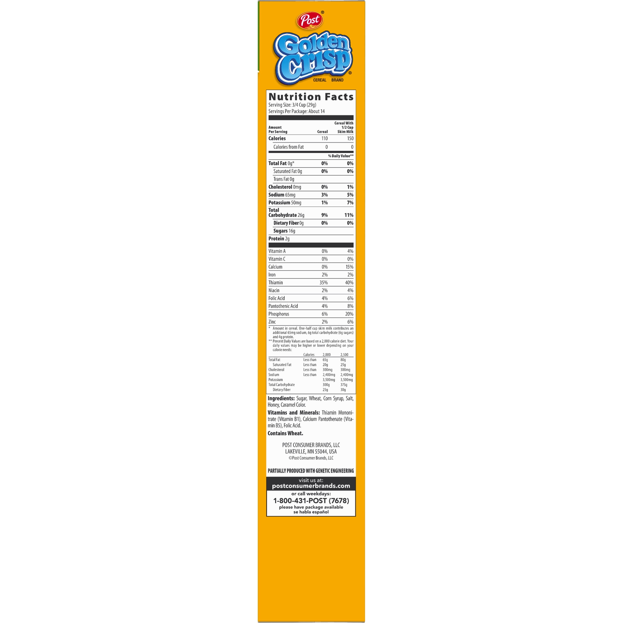 Children's Cereals | Environmental Working Group The list includes Kellogg's Honey Smacks, Malt-O-Meal Golden Puffs and Post Golden Crisp. ... That makes it more likely that to parents will fail to note that sugar is the first ingredient on the Nutrition Facts label, or that the cereal contains 3½ teaspoons of added sugar (14 grams) and unhealthy trans fats. (See Table 5 for additional ...