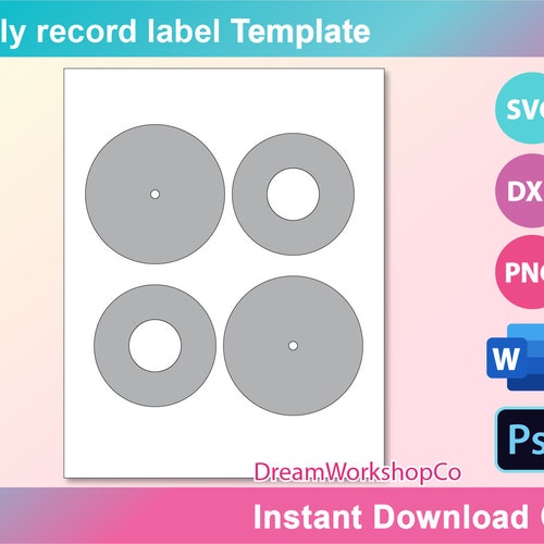Vinyl record label Template, Canva, Ms word, PSD, Png, SVG, Dxf, 8.5x11" sheet, Printable, Instant Download