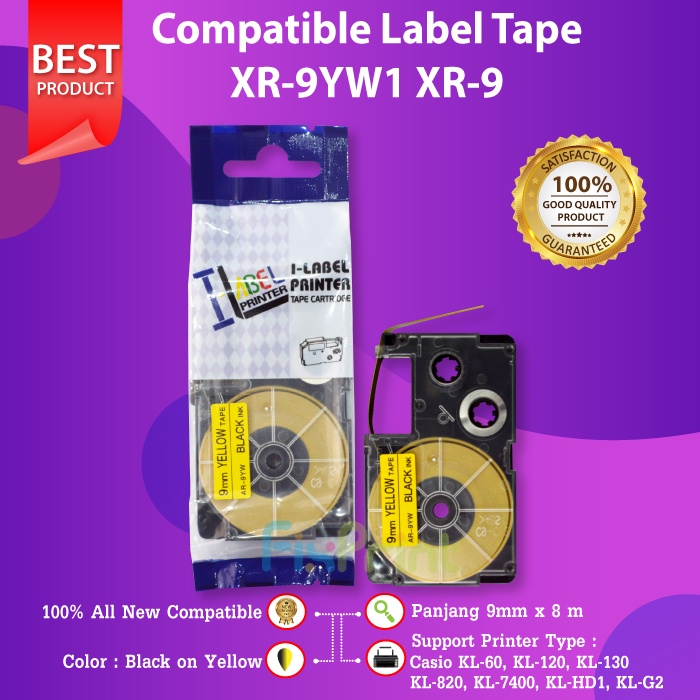 Compatible Label Tape Replacement for Casio XR-9WE2S XR-9WE Label Cartridges Compatible for Casio KL-120 KL-60 KL-100 KL-750 KL-780 KL-7000 KL-7200 EZ ...